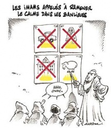 Pourtant, même si graphiquement, les réalisation du monsieur sont irréprochables, le résultat quant à ses chutes est plus contrasté. En effet, malgré son beau dessin, l'auteur n'a pas la même pertinence qu'un illustrateur de presse. Certaines idées sont bien trouvées (la révolte des banlieues, les chiens sont lâchés, King Kong et Eric Raoult, la corde au cou, basic instinct ...) car l'homme parvient à réunir différentes entités pour en ressortir quelque chose de pertinent et de drôle. Cependant, la plupart du temps, l'idée est facile, le texte dégage une réplique intéressante mais pas assez pour qu'elle soit totalement percutante. Maëster focalise 90% de son idée sur le dessin et compense le reste avec une situation qui aurait pu être imaginé par plusieurs autres artistes. Plus généralement, l'auteur a du mal à positionner clairement son style d'idée par rapport à l'actualité. Certes, les illustrateurs de presse non plus ne sont pas dénués d'opinion, mais Maëster semble jongler entre la neutralité et sa vision subjective des choses, à l'image de Cabu mais de manière moins osée. Au final, nous n'avons pas une véritable patte artistique au niveau des idées, chose provoquant alors l'étrange sensation du cliché exploité.