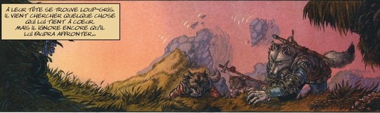 Les bois des vierges est sans doute l’une des meilleures séries de Jean Dufaux et cet état de fait, il le doit en partie au merveilleux dessin de Béatrice Tillier. Rarement, on aura vu un dessin aussi précis, aussi beau. Les personnages des poils sont fantastiquement réalistes. Ils expriment autant leur animalité que leur anthropomorphisme. Il n’est pas évident de dessiner un animal dans la position debout sans en perdre sa caractéristique. Béatrice Tillier y réussit fabuleusement bien.