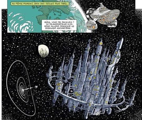 Je crois que t'es mort !Ce premier album est essentiellement une présentation, de l’univers, en premier lieu, avec un mélange de science fiction et d’Histoire, et des personnages, en second lieu, avec Daggy, Stuart et l’existence de manipulateurs qui répondraient pour certains au doux nom de Bogdanov (?!). Le duo improbable est sympathique, un peu traditionnel avec un débutant qui voulait faire autre chose et un acariâtre bourru qui semble avoir un problème avec son prénom (c’est vrai que s’appeler Dagobert, ce n’est pas toujours facile, surtout dans la cour de l’école). Si on a déjà vu ce genre de couple de maintes fois, en particulier au cinéma – je pense notamment aux films de Francis Veber comme le Jaguar ou la chèvre ... – la recette fonctionne toujours. Il faut dire que le dessin de Bruno Duhamel est fort sympathique, dans la pure tradition de la maison Dupuis, avec un découpage audacieux qui utilise toute la page et dont le style général rappelle les albums de Valérian et Laureline.