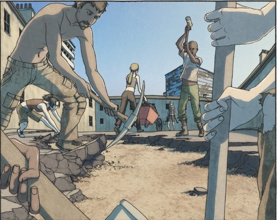 A l'huile ! Cette fluidité de l’action sera accentué par l’excellent travail graphique qui est encore plus vivant que dans les précédents tomes. Le fait que l’histoire se déroule en journée permet de véritablement profité du travail de l’artiste. Pluie, sang, tripes et décors sont détaillés avec brio. Le côté sympathique et coloré des personnages laisse un peu de place à une plus grande subtilité comme chez Jack ou Kaz tandis que Kait semble porter presque à elle seule, l’épisode sur ses épaules. Elle sera le lien entre la plupart des protagonistes et cela se ressentira aussi par l’ambivalence qu’elle incarne. Compagnon d’arme mais également enquêtrice féroce.