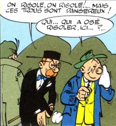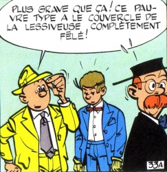 Détail essentiel : Libellule est de nouveau coiffé d'un chapeau jaune, qui gardera cette couleur dans les albums ultérieurs. Il gardera également, comme la plupart des personnages de la série (Jourdan excepté), une clope au bec qui ferait bien mauvais effet de nos jours dans une publication destinée à la jeunesse.