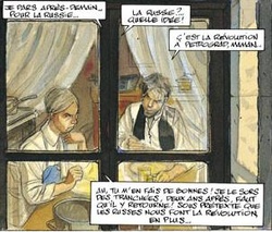 Suite et fin de la destinée romanesque de Mattéo, dans ce deuxième volet, où il va confronter ses idées à la réalité des choses. Se déclarant volontiers anarchiste, il est attiré en Russie par la révolution qui se trame et par son compagnon Gervasio. Et si dans son esprit, les choses sont faciles à mettre en place, il va découvrir que ses rêves sont un peu utopiques. Et le retour à la réalité va être brutal. Si bien qu'on se demande , si réellement, Mattéo est anarchiste. Car on est loin de l'image (d'Epinal ?) que l'on peut se faire d'un anar. Sauf erreur, un anarchiste est contre l'ordre, contre les institutions. S'il se sent proche des mouvements communistes, il n'en est pas un. Et son idée première est tournée vers le désordre. Et si on voit l'opposition entre les bolcheviks et les anarchistes dans l'album, marquée justement par ce diptyque ordre-désordre, on ne ressent pas vraiment cette idéologie dans le personnage de Mattéo. Au point que lui-même ne semble pas convaincu. Et c'est pourquoi, Gervasio lui dit ‘on est anarchiste, on le reste' (case6, page 13). Propos que Mattéo semble acquiescer du bout des lèvres.