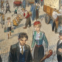 Mattéo est plutôt un doux rêveur, avec certes des idées de gauche, et même d'extrême gauche. Mails il apparaît comme un témoin des événements, il ne cherche pas à vraiment participer (même s'il tuera une connaissance pour reprendre aux anti-communistes le poste de communication). Son rôle sera d'ailleurs réduit à être photographe, rôle pas négligeable quand on connaît la force que peuvent avoir les mots et les photos. Au point qu'il se refusera de photographier les côtés noirs de la révolution avec ces morts collatéraux. Et si les mots et les photos peuvent avoir beaucoup d'impacts, il en est de même des textes et des dessins de Jean-Pierre Gibrat. Et si Mattéo en est à sa deuxième époque, Gibrat en est à sa troisième. Après une première époque de 1978 à 1986 où il est le dessinateur de scénaristes comme Jackie Berroyer, Guy Vidal ou Daniel Pecqueur, la deuxième époque démarre avec Le Sursis puis le Vol du corbeau (deux tomes, Dupuis), respectivement entre 1997 et 2002 où il se révèle être un scénariste aussi doué que le dessinateur. En 2008, la troisième époque démarre par le premier album de Mattéo où il fait évolué son dessin en s'affranchissant de l'encrage.