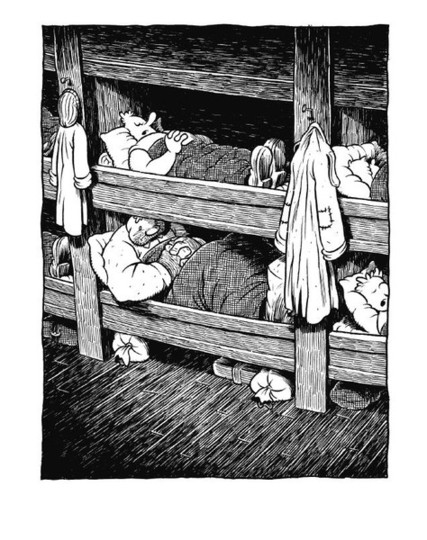 Le petit format presque carré du livre ne laisse pas beaucoup de place au gaufrier habituel de la bande dessinée. Drew Weing va alors faire un dessin par page sans les numéroter. Un peu déconcertant au début, on se laisse emporter au gré des flots et des aléas de la vie du héros dont on ne connaitra pas le nom. Certaines cases-pages sont de véritables gravures rappelant celles de Gustave Doré et le héros n’est pas sans rappeler un certain Popeye.