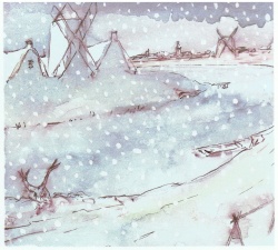 Les dessins sont grossiers, laissant entrevoir des paysages enneigés, pluvieux, disparaissant du visible, créant un rapprochement avec l'univers décrit par Jean Giono dans Un roi sans divertissement. C'est sur cette impression de tempête de neige croquant les silhouettes humaines, les bâtisses, et les paysages que l'auteur termine le portrait du peintre. Une fin juste, tout à fait réussie, ne nous laissant ni déception, ni impression de « pas fini ».