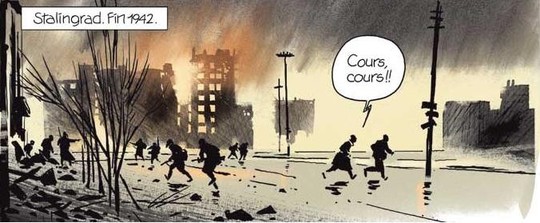 DR.Dans la prestigieuse collection Aire libre, les éditions Dupuis nous propose, cette fois, un album de Bourgeron et Ricard qui se déroule pendant la seconde guerre mondiale, lors de la bataille de Stalingrad. Lieu de tous les phantasmes et des histoires les plus extraordinaires (mais réelles) comme ce concert voulu par le parti à Stalingrad (voir Lutte majeure chez Casterman, collection KSTR), Stalingrad autorise les histoires les plus incroyables.