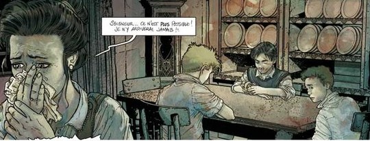 Si le personnage de Louison et son « pouvoir » reste énigmatique, l’atmosphère générale est superbement rendue par une mise en page anarchique où les cases sont posées sur des pages dessinées entièrement et où les cases ne sont jamais de format identique. Les couleurs sombres et l’abondance de détail historique montre au lecteur un monde en plein chaos et à un rythme infernal.
