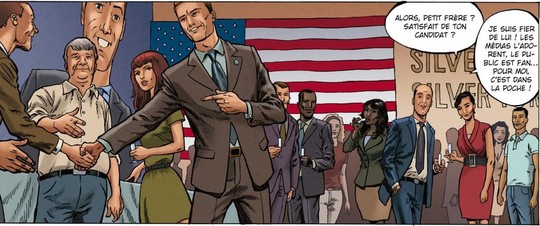 Pour l’instant, tout ce que l’on peut dire, c’est qu’on continue l’ascension. En mélangeant à la fois l’intrigue personnelle de Jonathan Silver qui postule pour devenir le prochain président des États-Unis en utilisant le don de son pendentif (qu’il porte au revers de sa veste, d’ailleurs !) et l’intrigue concernant le personnage qui récupère un à un tous les pendentifs à la fin de chaque album, on découvre une histoire moins légère que d’habitude.