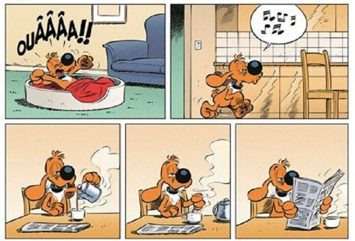 Dans ce nouvel opus, la peinture est omniprésente : de l’expo visitée pour éviter une averse, au talent de Boule à croquer sa mère ou son chien énergique. Mais l’art doit affronter un fléau, celui de la télé. Un média qui sévit aussi dans cette maison, où tout le monde ne peut pas choisir le programme qu’il souhaite. Il faut dire que quand on est un chien capable de jouer aux échecs, de lire le journal, on est en droit d’attendre d’être traité comme un humain. Mais le veut-il vraiment ?
