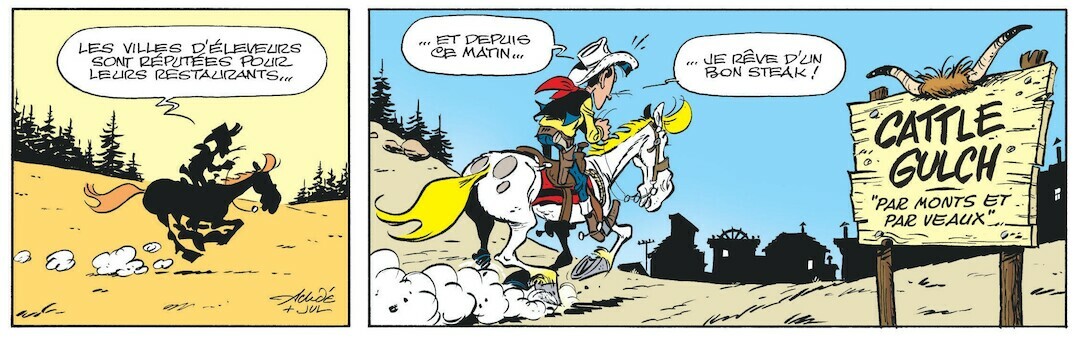 Quatrième tome pour le scénariste Jul, toujours avec Achdé au dessin qui signe tous les tomes de cette série. L'auteur de Silex and the city reprend quelques thèmes de société actuels (la défense de la cause animale et le veganisme) dans l'univers de Lucky Luke. Vous imaginez bien qu'au pays du hamburger et en pleine période Far West, cela va procurer quelques situations ubuesques et iconoclastes comme ces desperados végétarien jusque dans le sobriquet.
