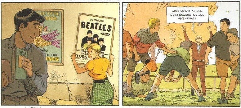 Jean-Louis Tripp et Aude Mermilliod nous emmènent à une époque qui pourraient paraitre ancestrale à certains jeunes lecteurs. Fin des années 60, l'année précédant le mythique mai 68, les deux auteurs, avec Horne aux dessins, nous racontent une France réac avec une jeunesse en pleine ébullition.