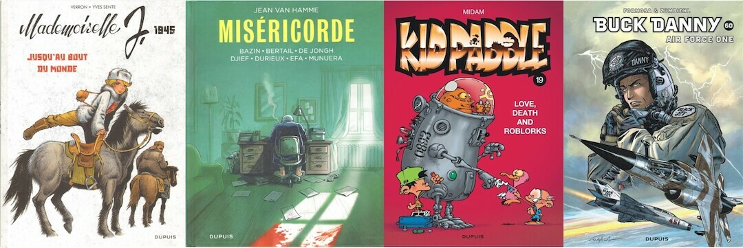 Dupuis : Mademoiselle J T3, Miséricorde, Kid Paddle T19, Buck Danny T60