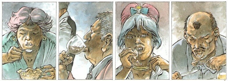 Dans la société qu’Herman met en scène dans sa série, il y a souvent deux mondes, celui des riches et des puissants d’un côté et celui des pauvres et de ceux qui subissent de l’autre. Jeremiah et Kurdy côtoient ses deux mondes sans jamais vraiment appartenir à l’un ou l’autre. Un album cru dans lequel il est parfois difficile de suivre la cohérence des dialogues mais qui a ses moments d’humour avec les commentaires de Kurdy qui est comme un spectateur privilégié et qui ne s’inquiète guère pour son ami.