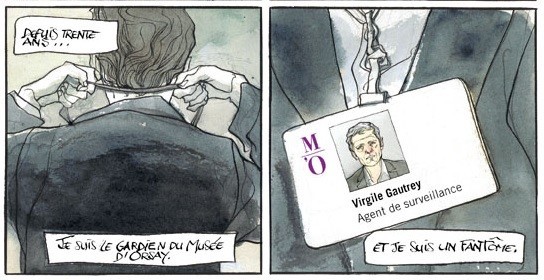 Dans cet album, il nous propose une plongée vibrante dans les oeuvres du musée d'Orsay, à suivre une enquête menée par le gardien du musée, Virgile Gautrey, sur la disparition des nymphes, égéries et autres muses. Qui a bien pu les enlever ? Et le voilà transporter dans le temps, à bord d'une locomotive à vapeur comme il se doit (pour rappel, le musée d'Orsay est une ancienne gare de Paris), à la poursuite d'un voleur et avec comme assistant, le buste de Goethe lui-même.