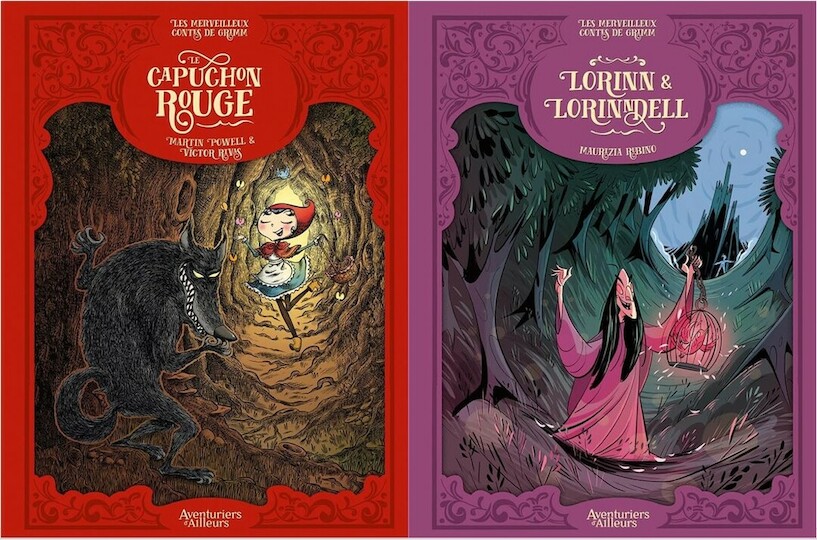 Pour démarrer l'année 2024, Les Aventuriers de l'étrange propose deux albums qui sont l'adaptation de contes de Grimm. En premier lieu, celui du petit chaperon rouge, bien connu de tous et qui est décliné selon deux cultures : la première dans un récit classique par l'espagnol Victor Rivas où la petite fille à la capuche rouge se laisse abusée par le méchant loup mais n'est pas aussi naïve qu'il y parait. Un conte avec un graphisme qui n'est pas sans rappeler celui d'un Joann Sfar ; un second récit par le russe Alexander Utkin dans une adaptation très originale et colorée qui nous rappelle son graphisme sur le Roi des oiseaux (chez Gallimard jeunesse).