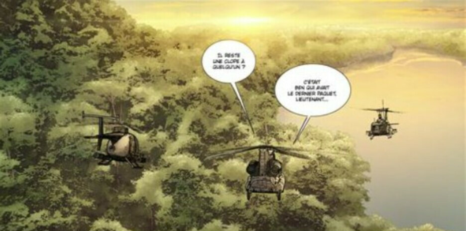 Au dessin, Stéphane Bervas propose un style dynamique et nerveux qui sert efficacement l’atmosphère de guérilla et de tension permanente. Les scènes dans la jungle, étouffantes et oppressantes, renforcent la sensation d’un piège qui se referme sur les protagonistes. Les couleurs d’Arif Prianto accentuent l’ambiance dramatique, alternant teintes sombres et vertes de la forêt asiatique.