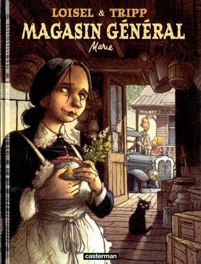 Il était très attendu, ce nouveau projet de Régis Loisel, le fameux dessinateur de la Quête de l'oiseau du temps et auteur de Peter Pan. Avec Magasin Général, Loisel retrouve le travail en équipe. Lui et Jean-Louis Tripp ne se sont pas divisé mais partagé le travail : ils ont scénarisé et dessiné à quatre mains. En préface de ce grand et large album (quatre-vingts pages), on nous présente les « deux étapes » de l'élaboration d'une planche, le passage de relais entre les deux dessinateurs : Loisel met en scène, réalise les croquis et Tripp détaille et finalise la planche.