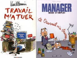 A quelques mois d'intervalle, deux albums aux titres quasiment identiques traitent tous les deux du monde du travail. A ma gauche : Travail m'a tuer de Vuillemin. A ma droite : Ce travail m'a stresser de Serge Dehaes. Ding !