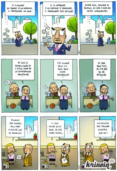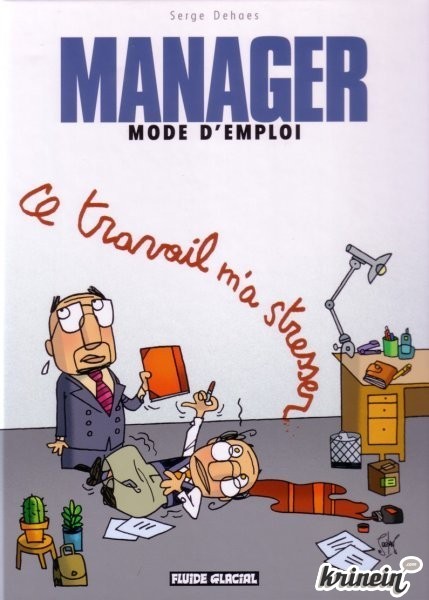 Rendre amusant un quotidien aussi trivial et déprimant n'est pas gagné d'avance, et certains s'y cassent tout simplement les dents. Coïncidence fendarde, à quelques mois d'intervalle sortent deux albums sur le sujet, à la couverture semblable et au titre quasiment identique : en octobre dernier, c'était Vuillemin qui livrait Travail m'a tuer chez Vent des Savanes ; ce mois-ci, le tome 2 de Manager mode d'emploi de Serge Dehaes sort chez Fluide Glacial et s'intitule Ce travail m'a stresser... Un télescopage d'autant plus curieux que l'affaire « Omar m'a tuer » commence à dater sérieusement, et que ce genre de variante ne fait plus rire personne depuis bien longtemps.