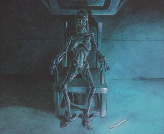 Au fond de la cavechaudes. Il serait exagéré de parler d’un érotisme torride ou d’un dessin réussissant par ses qualités à émouvoir le lecteur mais du moins les proportions sont respectées, les personnages ressemblent moins à des pantins désarticulés, les volumes et les arrondis des chairs mieux travaillés, leur enlevant la rigidité cadavérique du premier tome. Un travail a également été effectué au niveau de la couleur avec des dégradés intéressants et une pensée globale de la page. On remarquera particulièrement ces deux pages bleutées lorsque les héros descendent dans une cave et y découvrent un cadavre desséché.