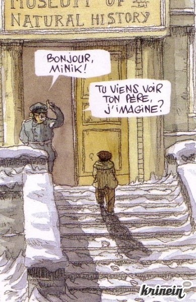 contraire de Maxikbonnes à exposer au musée. L'album ne verse pas pour autant dans le pamphlet ni la leçon de morale, car l'ambiance distillée par les douces images d'Hippolyte privilégie la poésie éthérée, axée sur le ressenti de Minik plutôt que sur la condamnation des gens qui l'entourent. Il a d'ailleurs la chance d'être recueilli par de bonnes gens, qui font ce qu'ils peuvent pour l'aider à s'intégrer sans pour autant perdre son identité.