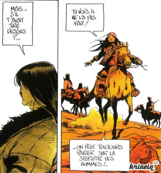 Péma facture de gazsteppe aux représentantes du beau sexe. Elle copine avec les loups, et lorsqu'un bandit redouté du nom de Drukpa vient lui dire qu'il ferait volontiers d'elle son quatre-heures, elle lui rétorque qu'il est vilain, qu'il pue, et que s'il s'approche à nouveau elle lui coupera les roustons et lui en fera des sushis (en paraphrasant un peu). Avec ce caractère en acier trempé, elle deviendra la reine des voleurs, tout en conservant un sens de l'honneur rare dans ce genre de profession...