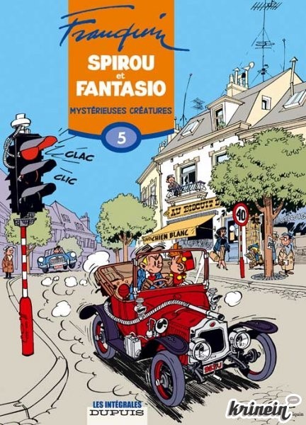 pointe le bout de son nez ; et bien, tintin ! les années 56 et 57 voient naître deux des meilleurs crus des aventures du groom. Dans l'intégrale publiée ce mois-ci par Dupuis sous le titre Mystérieuses créatures, on retrouve ces deux récits intitulés Le nid des marsupilamis et Le voyageur du Mésozoïque ; le volume est complété des traditionnels bonus d'ouverture (parfaits une fois de plus), et de plusieurs récits courts parus initialement dans les albums Le gorille a bonne mine (tome 11) et Le nid des marsupilamis (Tome 12). On peut d'ailleurs regretter que ces multiples (cinq !) récits courts soient réunis pour la plupart après les deux histoires les plus longues et les plus réussies : imaginez qu'une salle de cinéma programme ses courts métrages après la projection du long !... On accordera à Dupuis le respect de la chronologie : la plupart de ces mini-histoires se situent dans une continuité articulée autour de la « grève de Fantasio », qui se situe elle-même dans la suite du Voyageur du Mésozoïque. N'empêche qu'on aurait pu sans peine garder pour la fin le Nid des marsupilamis...