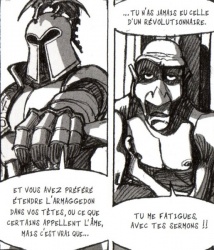 Visuellement, on retrouve le style de Fredman, affecté un dynamisme qui évoque le dessin animé (il a travaillé dans l'animation), avec un style crayonné qui a forcément plus de cachet que ses productions pour Vents d'ouest. On trouve même quelques scènes assez inspirées, comme ces apparitions récurrentes d'un chevalier qui persécute Armand d'une façon comparable au démon de Robin Williams dans le film Fisher King. Mais globalement, les péripéties apparaissent comme le résultat d'un simple calcul visant à « faire sérieux » et à « traiter de sujets importants ». L'effort est laborieux, il est peut-être sincère mais ne semble pas naturel. Le deuxième volet révèlera-t-il une puissance cachée ?...